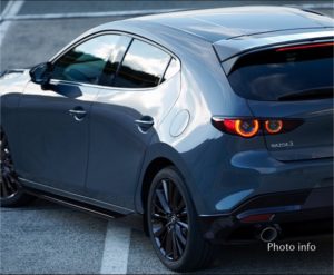 とくにマツダ3 ハッチバック(ファストバック)は、ブランドのアイデンティティであるシグネチャーウィングが歴代で初めて、ブラックアウトされています。(セダンは引き続きシルバーメッキが採用)