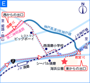 西側からのアクセスであれば、第二神明道路の須磨ICで降りるこ