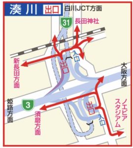 ・大阪方面から高速を利用して来店するときは湊川ICで降りる