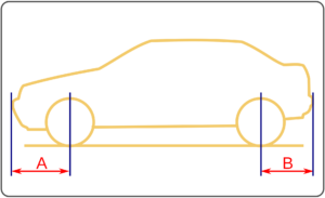 リヤオーバーハングは、フロントオーバーと同様の意味で、それのリヤ版です。(画像のBの部分です)