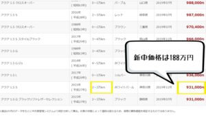 人気車種アクアでも【4年経過+2~3万km】だと、ちょうど半分くらいの価格です。
