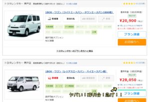 レンタカーの車種検索をしていると、以下の写真の【トヨタ ライトエース バン】や【日産 NV200 バネット】を見かけたり、先ほど紹介した
