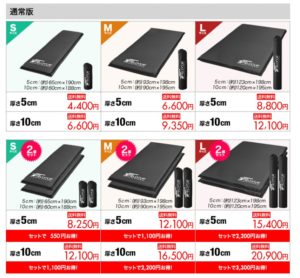 比較するのはオンリーワンスタイルのマットに1番サイズが近い、「Sサイズ×厚さ10cm」のタイプです。