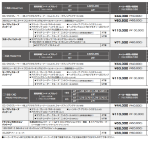 下位グレードの「15S PROACTIVE」にメーカーオプションで追加できて、「15S PROACTIVE S Package」に標準装備されてるものは、以下の8つの装備です。