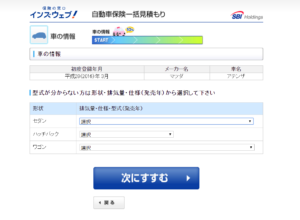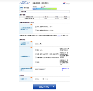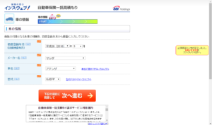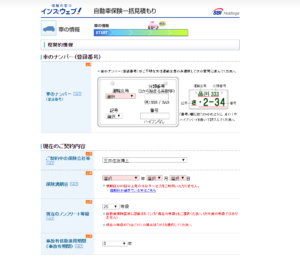 ④クルマのナンバー、現在の保険の内容を保険証券を見ながら入力