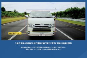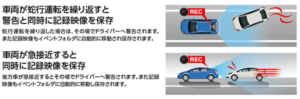 蛇行運転や車間距離不保持で、AIによりあおり運転と判断された場合はイベント録画開始。