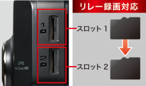 さらにスロットは2つ搭載しているので、合計で最大256GB分の動画を録画することができます。