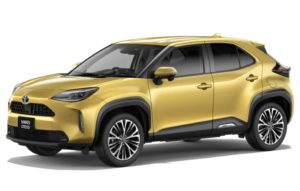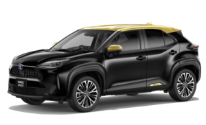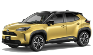 ヤリスクロスのイメージカラー、ブラスゴールドメタリックは全身がゴールドカラーです。